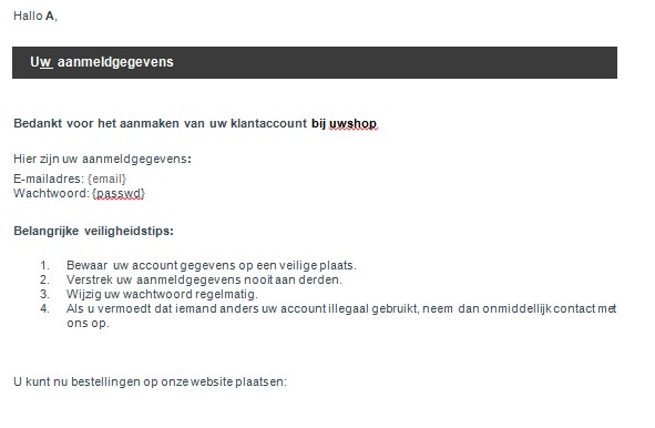 Er wordt een mail naar de klant gestuurd met de volgende tekst: