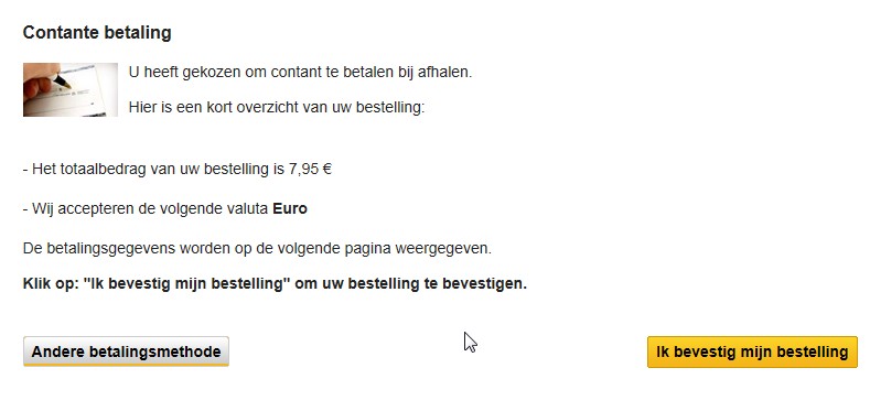 Problem module "cheque" bij wijzigen naar "Contant bij afhalen"