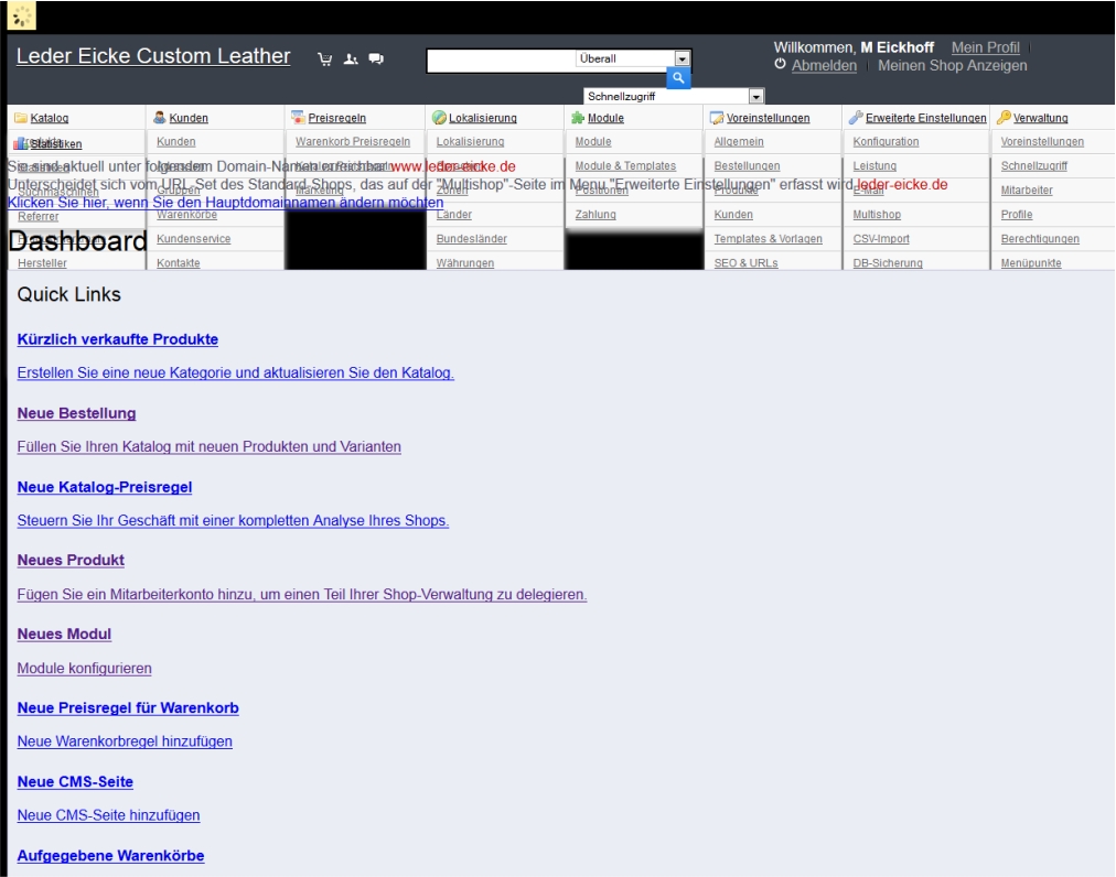 guest* Posted May 20, 2013 Share Posted May 20, 2013 Hast du schon eine .htaccess generiert ? Im Screen wäre das bei dir unter der Spalte Voreinstellungen, der letzte Link -S eo & URL's. Link klicken, dort unter SEO & URL's auf friendly URL schalten und dann speichern. Sollte das Problem beheben. Wenn nicht, dann überprüfe, ob deine .htaccess überhaupt über Schreibrechte (CHMOD 0750 oder 0755) verfügt. Diese Datei findest du im Root (Wurzel) deines Shops. Link to comment Share on other sites More sharing options...