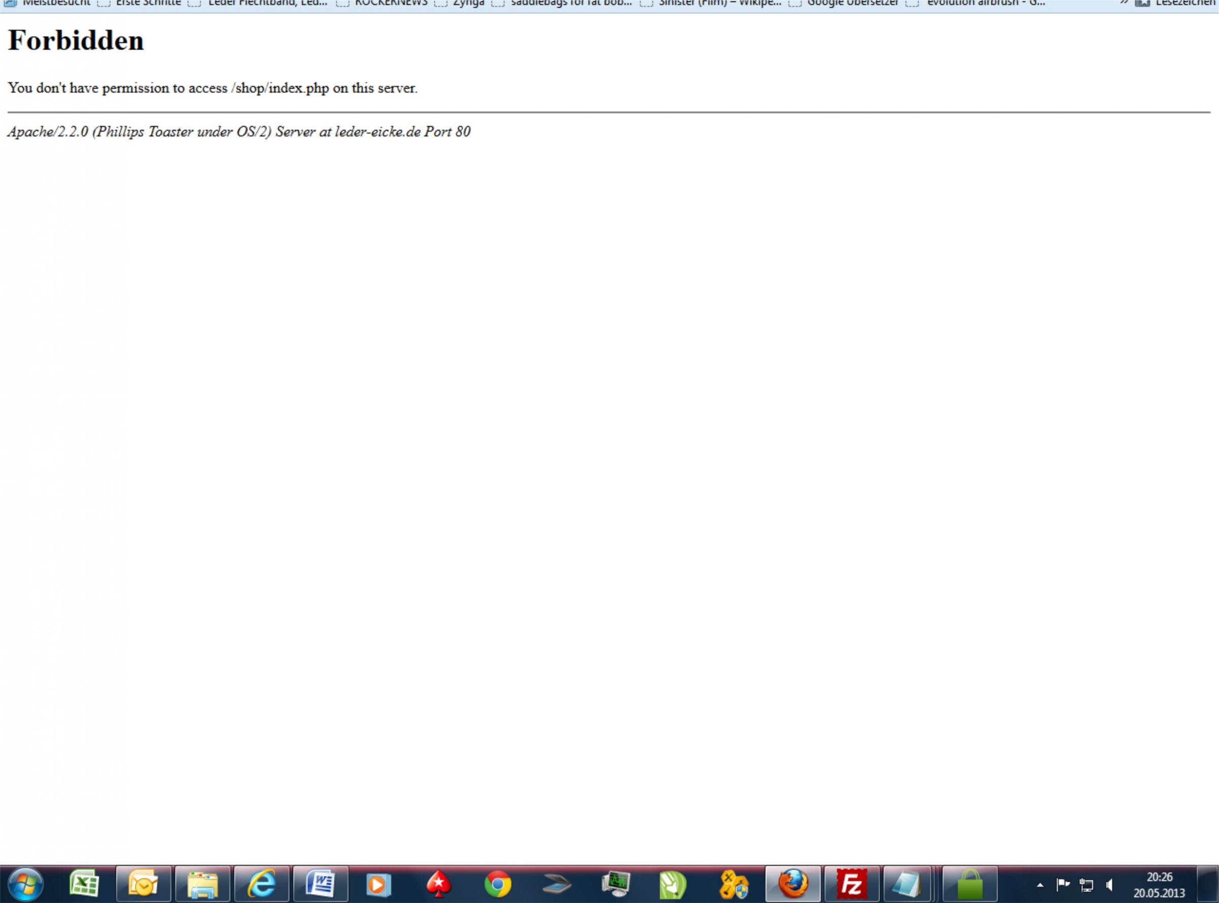 lecl Posted May 20, 2013 Author Share Posted May 20, 2013 (edited) meine .htaccess haben keine Schreibrechte (0644), nur ist keine .htaccess im Root. habe friendly URL gespeichert, dafür ist .htaccess jetzt im Root und ich bekomme folgende Anzeige : 403 forbidden Forbidden You don't have permission to access /shop/index.php on this server. Edited May 20, 2013 by lecl (see edit history) Link to comment Share on other sites More sharing options...