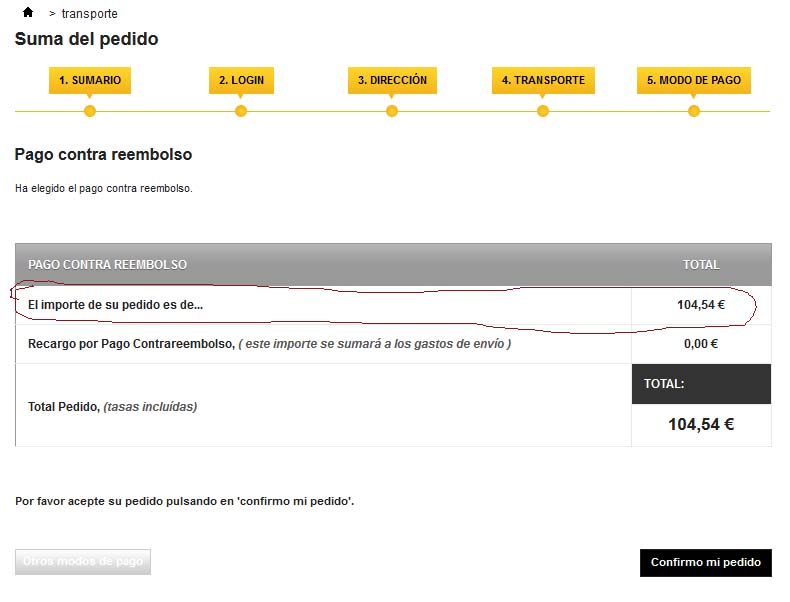 JMAM2007 Posted May 20, 2013 Share Posted May 20, 2013 Hola, llevo poco tiempo en esto y necesitaría ayuda con un problema con el que me he topado. No se como hacer que muestre el total con los gastos de envío en la ultima pantalla informativa al hacer un pedido antes de confirmarlo. Solo sale el importe del articulo sin los gastos de envío sumados. Me pasa siempre independientemente de la forma de pago elegida. Alguien puede ayudarme. Gracias. Adjunto la pantalla. Link to comment Share on other sites More sharing options...