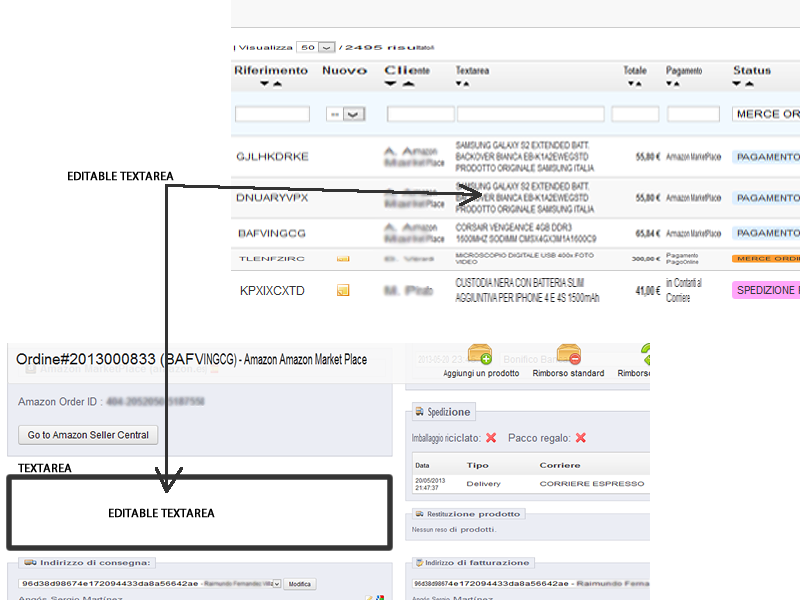trippodo Posted May 21, 2013 Share Posted May 21, 2013 I need to add a new editable TEXTAREA in the Admin Order detail and i want to see it in the BO Order Listing in a new column In the picture an example of what I would like I have already applied this changes indicated by VEKIA: added new field to the orders table, with name "textarea" added this code to the AdminOrdersController.php (controllers/admin/) 'customer' => array( 'title' => $this->l('Customer'), 'havingFilter' => true, ), after the above code i added this: 'textarea' => array( 'title' => $this->l('Textarea'), ), at the time I populated the TEXTAREA fields by entering the name of the product through a mysql query, but I would see what I write in the textarea in the order detail see the example picture thanks Link to comment Share on other sites More sharing options...