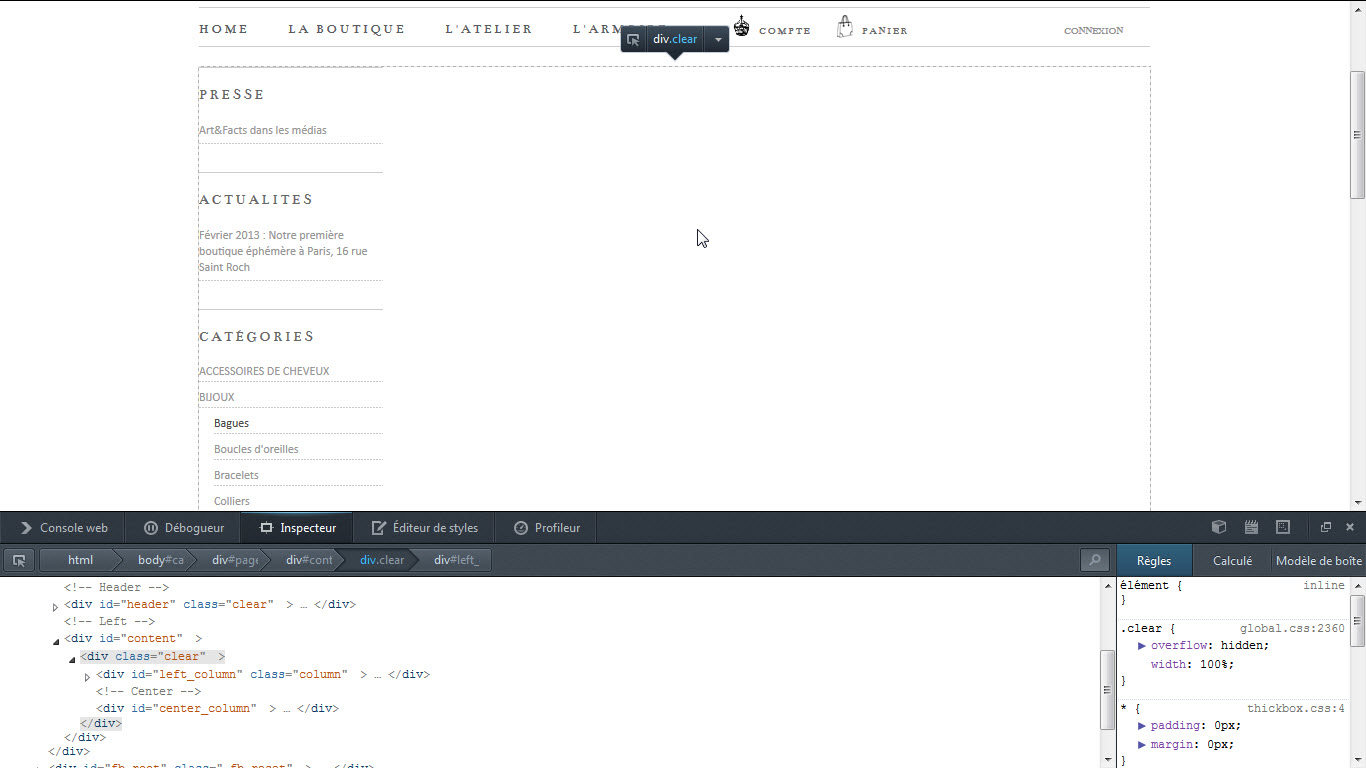 dorian-JLC Posted May 22, 2013 Share Posted May 22, 2013 Bonjour, Je suis actuellement entrain de faire une monté de version d'une boutique prestashop (http://www.artetfacts.com/) qui à la v1.3.1, le thème pose quelques soucis. Je ne pas monté à la version 1.5.2 car le thème n'est pas soutenu, je reste donc sur les version 1.4.x. Il n'y a pas de problèmes avec la 1.4.1 cependant avec la version 1.4.9 la partie centrale a des problèmes d'affichage : - au niveau de http://www.artetfacts.com/eboutique le module homefeatured ne s'affichait pas j'ai donc modifier le nom du dossier dans le thème par home_featured. - au niveau de bijoux (dans les catégories en générale) aucun article ne s'affiche (partie centrale blanche) En comparant j'ai réussi a identifier home featured products qui ne s'affiche pas dans le code après : <!-- Center --> <div id="center_column"> il devrait y avoir : <!-- MODULE Home Featured Products --> ... <!-- /MODULE Home Featured Products --> PS : la boutique en ligne est stable en v1.3.1, la version 1.4.9 est en local En ligne : Hébergeur OVH En local : wamp Apache 2.4.2 PHP 5.4.3 MySQL 5.5.24 Cordialement, Dorian Link to comment Share on other sites More sharing options...