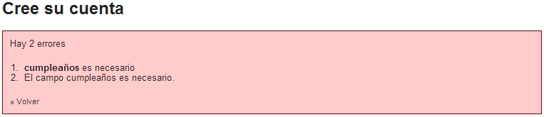 mg.storeonline Posted May 22, 2013 Share Posted May 22, 2013 (edited) Buenos días a tod@s!! Este es mi primero post , tengo un problema con la nueva actualización de prestashop 1.5.4.1, tenia la 1.4.8.2 actualice a la 1.4.10 y luego con el modulo a la 1.5.4.1, pero ahora los nuevos usuarios no se pueden registrar, porque al intentar registrarse dice que el cumpleaños es necesario y el error sale 2 veces: Hay 2 errores 1. cumpleaños es necesario 2. El campo cumpleaños es necesario. Os pongo una imagen. A alguien mas le ha pasado esto? y lo ha podido solucionar? La pagina web es: http://mgstoreonline.com/ Muchas gracias a todos Un saludo Edited May 22, 2013 by mg.storeonline (see edit history) Link to comment Share on other sites More sharing options...