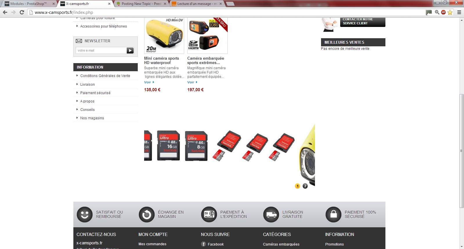 Gilles Carpentier Posted May 26, 2013 Share Posted May 26, 2013 I have configurated the slider with 2 images for my home page but if you look at it there is a size problem ! http://www.x-camsports.fr/index.php?id_category=3&controller=category Here is a screen copy of the parameters and a screen copy of the result which is poor I also attach the imges Please Help Thanks Gilles Link to comment Share on other sites More sharing options...
