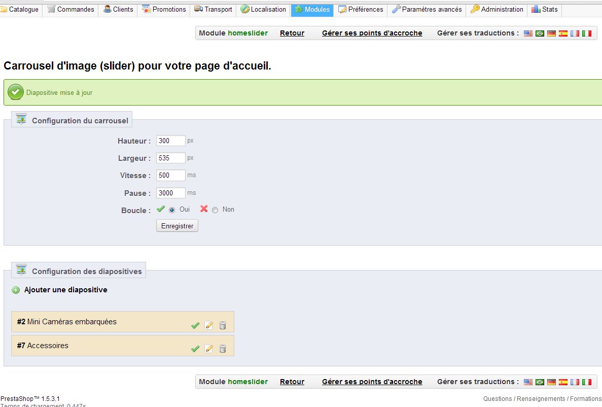 OlivierJM Posted May 26, 2013 Share Posted May 26, 2013 I have configurated the slider with 2 images for my home page but if you look at it there is a size problem ! http://www.x-camspor...roller=category Here is a screen copy of the parameters and a screen copy of the result which is poor I also attach the imges Please Help Thanks Gilles I see well your website. Try Forcing compilation Link to comment Share on other sites More sharing options...