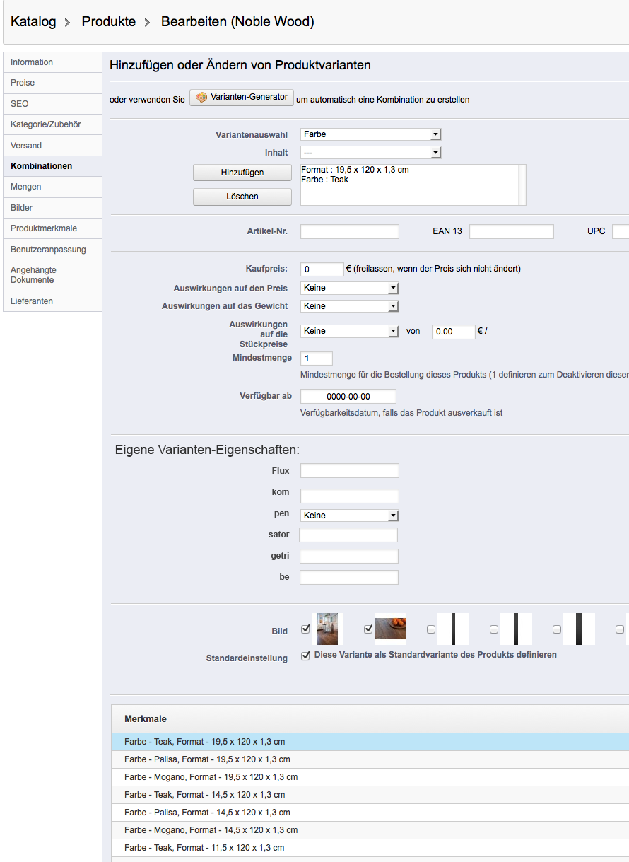mcian Posted May 27, 2013 Share Posted May 27, 2013 Hello, i would like to add more information to each combination. Let's say i have two sizes and two colours, making it 4 combinations. Currently, each combination accepts different Art.No, EAN13, UPC, Price, Weightand Image. I need far more attributes PER EACH combination. I've attached an image to clariy what i mean: "Eigene Varianten-Eigenschaften" (Custom combination attributes) Is there any way to achieve this? Marc Link to comment Share on other sites More sharing options...