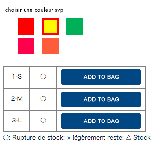 jln_lndr Posted May 28, 2013 Share Posted May 28, 2013 Bonjour, Je souhaiterais modifier l'aspect de la liste d'attribut sur ma fiche produit en l'affichant sous forme de tableau et en ajoutant un bouton ajouter au panier. J'ai reproduit sous forme de schéma mon idée. J'ai vu des modules permettant de le faire sur product-list.tpl trouvé des sujets sur ce forum expliquant la démarche à suivre mais l'attribut n'est pas ajouté, on ne retrouve que le produit par défaut dans le panier. En espérant que vous puissiez m'aider. J Link to comment Share on other sites More sharing options...