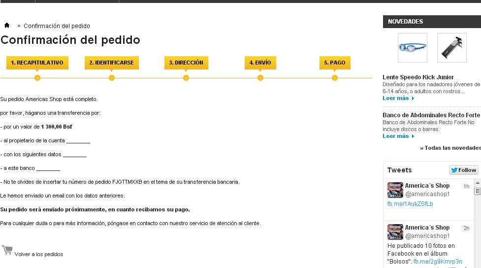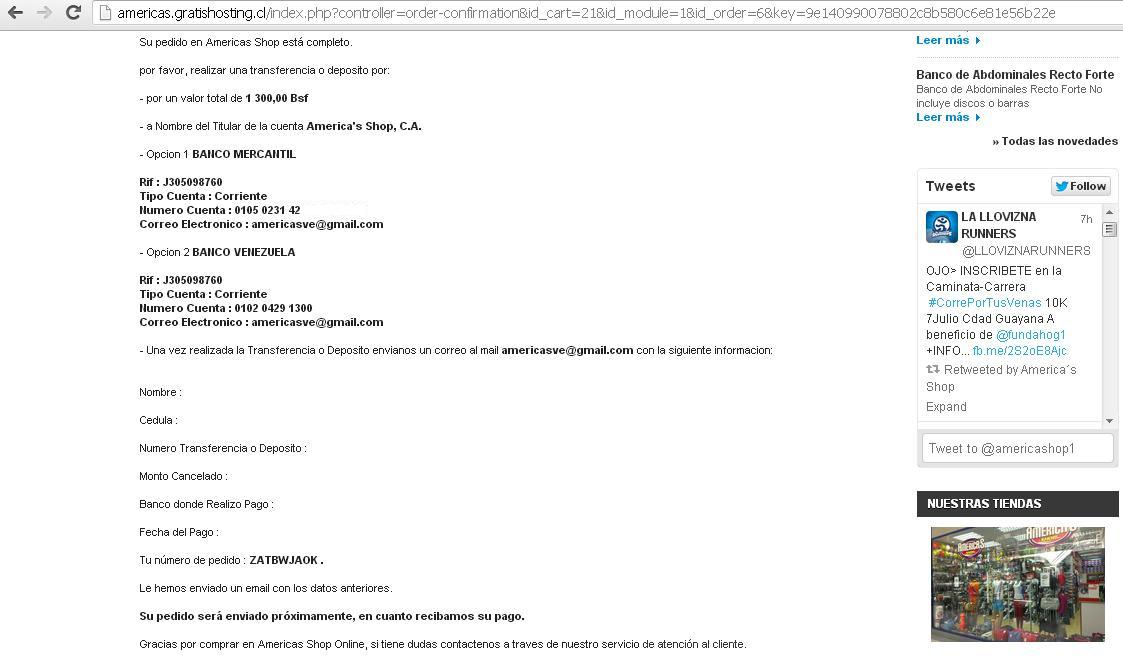 erikmlb Posted May 29, 2013 Author Share Posted May 29, 2013 (edited) Muchas Gracias amigo... y si ya he probado desde la carpeta de mails pero no logro encontrar las lineas que quiero moidificar no se donde se encontraran sigo buscandolas... De todos modos si alguien mas experto pudiera ayudarme las lineas a cambiar son las siguientes: Su pedido Americas Shop está completo. por favor, háganos una transferencia por: - por un valor de 1 300,00 Bsf - al propietario de la cuenta ___________ - con los siguientes datos ___________ - a este banco ___________ - No te olvides de insertar tu número de pedido NOUHWLIDM en el tema de su transferencia bancaria. Le hemos enviado un email con los datos anteriores. Su pedido será enviado próximamente, en cuanto recibamos su pago. Muchas Gracias Nuevamente Saludos. Nota: esto no es un mail sino que es cuando se realiza un pedido y le das a transferencia te sale este mensaje en la pantalla y uno le debe agregar su datos pero me gustaria modificar un poco la informacion a como viene de fabrica. Aqui unas imagenes de la informacion en pantalla que me gustaria poder modificar Nota 2: tampoco estan llegando los correos al mail de la tienda o al del comprador. Edited May 29, 2013 by erikmlb (see edit history) Link to comment Share on other sites More sharing options...