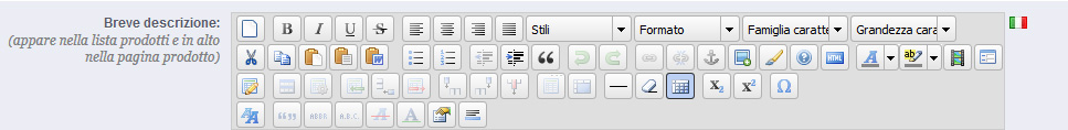 Arteinfo Posted June 3, 2013 Share Posted June 3, 2013 L'editor di prestashop è proprio tinymce, se vuoi puoi impostarlo in modalità avanzata operando così (in prestashop 1.5.x): Nel file admin\themes\default\template\helpers\form\form.tpl cerca questo codice: tinySetup({ editor_selector :"autoload_rte", }); modificare così: tinySetup({ theme_advanced_buttons1 : "newdocument,|,bold,italic,underline,strikethrough,|,justifyleft,justifycenter,justifyright,justifyfull,styleselect,formatselect,fontselect,fontsizeselect", theme_advanced_buttons2 : "cut,copy,paste,pastetext,pasteword,|,search,replace,|,bullist,numlist,|,outdent,indent,blockquote,|,undo,redo,|,link,unlink,anchor,image,cleanup,help,code,,|,forecolor,backcolor", theme_advanced_buttons3 : "tablecontrols,|,hr,removeformat,visualaid,|,sub,sup,|,charmap,media,|,ltr,rtl,|,fullscreen", theme_advanced_buttons4 : "styleprops,|,cite,abbr,acronym,del,ins,attribs,pagebreak", }); In js/tinymce.inc.js commentare con // theme_advanced_buttons1 : "newdocument,|,bold,italic,underline,strikethrough,|,justifyleft,justifycenter,justifyright,justifyfull,styleselect,formatselect,fontselect,fontsizeselect", theme_advanced_buttons2 : "cut,copy,paste,pastetext,pasteword,|,search,replace,|,bullist,numlist,|,outdent,indent,blockquote,|,undo,redo,|,link,unlink,anchor,image,cleanup,help,code,,|,forecolor,backcolor, media, fullscreen", theme_advanced_buttons3 : "tablecontrols,|,hr,removeformat,visualaid,|,sub,sup,|,charmap,|,ltr,rtl,|", theme_advanced_buttons4 : "styleprops,|,cite,abbr,acronym,del,ins,attribs,pagebreak", //theme_advanced_buttons3 : "", //theme_advanced_buttons4 : "", Link to comment Share on other sites More sharing options...