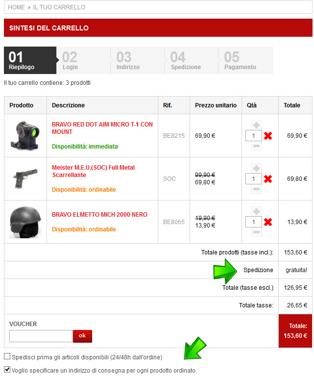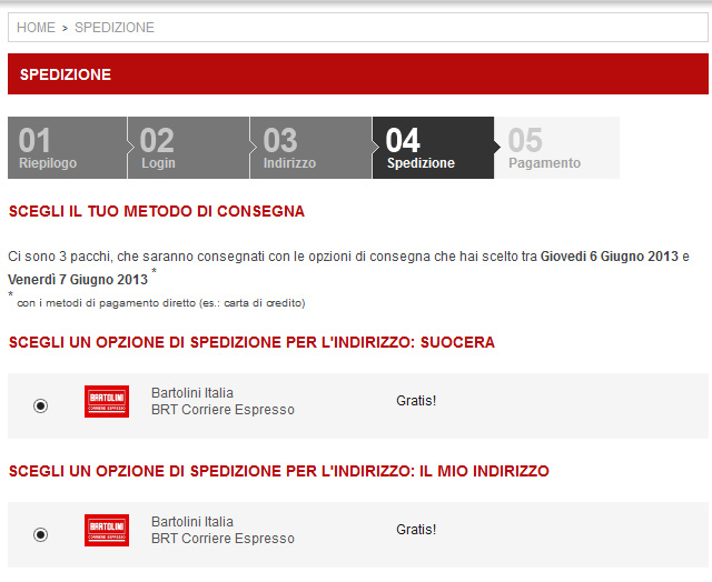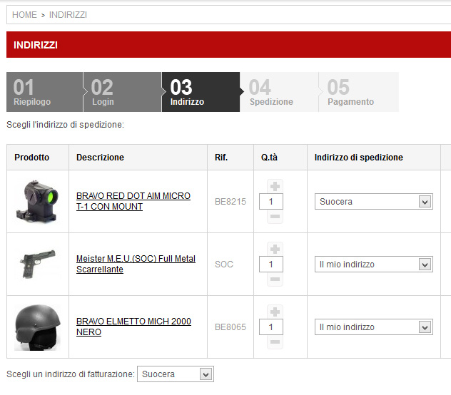 • Voglio specificare un indirizzo di consegna per ogni prodotto ordinato.