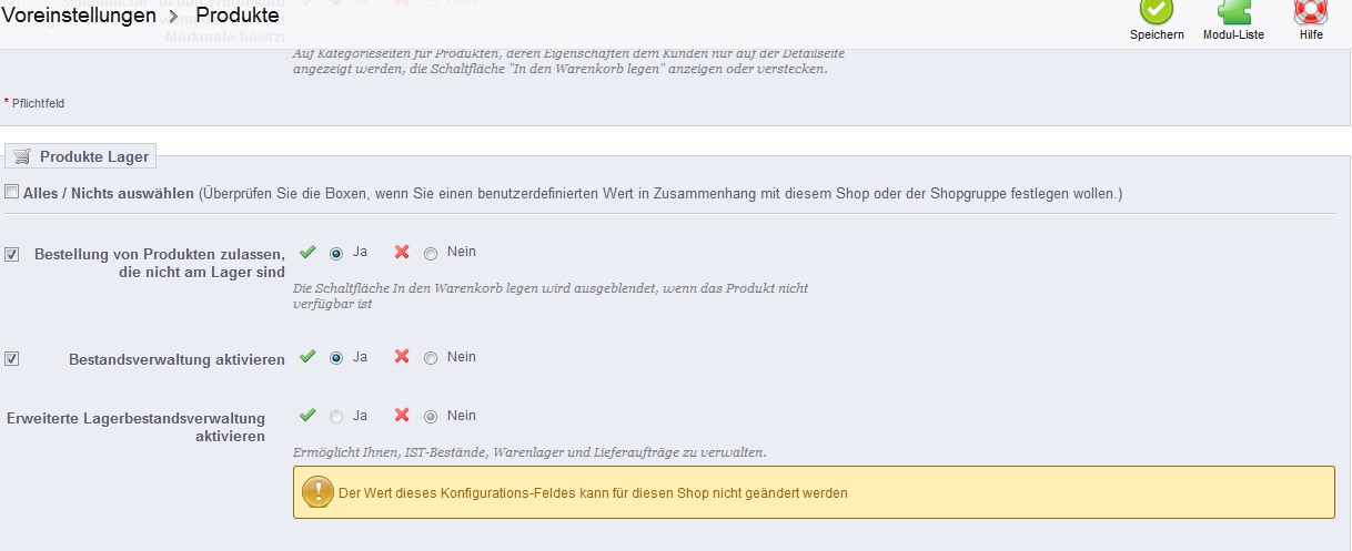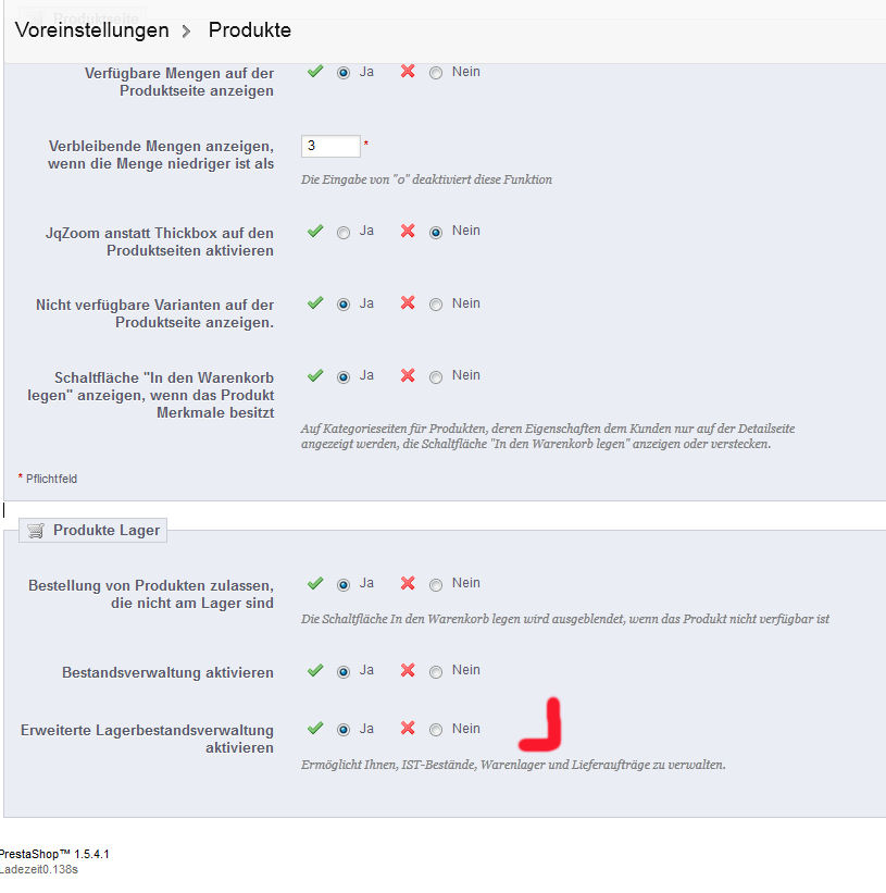 maloross Posted June 2, 2013 Share Posted June 2, 2013 Leider komme ich (Prestashop-Anfänger) nicht mehr weiter. Ich würde gern die "erweiterte Lagerbestandsverwaltung" nutzen, um auch die physikalischen Mengen verwalten zu lassen. Geht allerdings nicht (siehe Bild1). Auch auf der Startseite des BO fehlt der Reiter/Tab "Lagerverwaltung" (s.Bild2). Kann mir jemand weiterhelfen? Danke im voraus... Link to comment Share on other sites More sharing options...