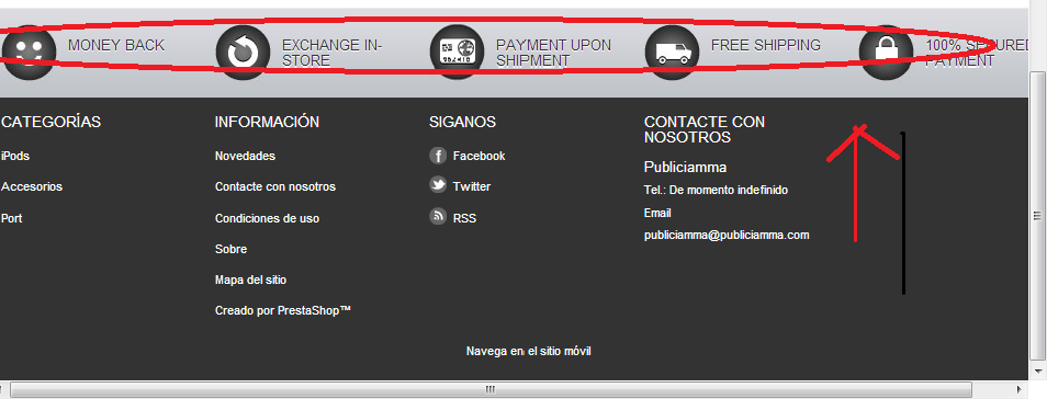 nadie Posted June 2, 2013 Share Posted June 2, 2013 Necesito quitarlo, pero desde las opciones de footer solo se puede cambiar la parte negra, alguien me puede ayudar? Ese es un modulo llamado: Bloque de reaseguros Lo puedes desinstalar, desactivar, eliminar completamente, o configurar desde la pestaña modulos -> modulos de tu tienda. Link to comment Share on other sites More sharing options...