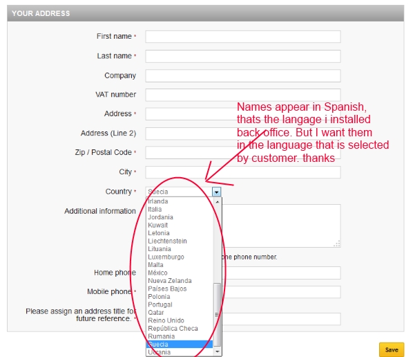 kenkokafe Posted June 4, 2013 Author Share Posted June 4, 2013 yes I do . the back office was installed in spanish. And I have 3 languages in the pack, spanish, english and latvian. But the countries on that drop list does not appear in any other language. any idea? thanks Link to comment Share on other sites More sharing options...