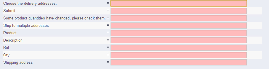 salve a tutti, sto provando a tradurre il mio tema che ha alcuni tab mancanti, ho provato a modificare il tema in locale ma il problema e che i campi da tradurre non ci sono, allora mi sono messo ad usare il modulo di prestashop per le traduzioni da BO