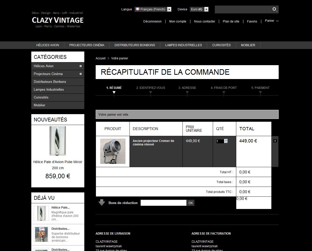 grecopolak Posted June 6, 2013 Share Posted June 6, 2013 Bonjour, comme vous pouvez le voir sur les screenshots joints, j'ai un souci d'affichage lorsque j'essaye de vider le panier. j'ai bien un encart qui dit j'ajoute plusieurs produits dans le panier puis le les enlève 1 à 1, ça marche jusqu'au dernier qui reste dans le panier même si il y a l'encart qui dit : votre panier est vide. ce n'est pas très génant mais ça fait pas hyper sérieux. vous pouvez essayer par vous même : http://www.clazyvintage.com/fr/17-anciens-projecteurs-cinema-cremer-vintage-a-vendre Merci d'avance de votre aide. Link to comment Share on other sites More sharing options...