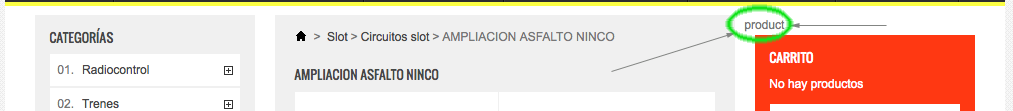 nadie Posted June 6, 2013 Share Posted June 6, 2013 Nada, por más que miro no sé qué puede ser... voy a ver si me puedo explicar mejor: Por un lado hay un módulo "Breadcums" instalado donde nos va facilitando información sobre en que sección estamos dentro de la tienda, bien, pero junto encima de donde he colocado el módulo del carrito, se me ve el nombre de... no sé, la sección tal vez, de donde estamos. He mirado de ocultarlo mediante CSS, pero se me modifican otras partes de la web que no quiero cambiar, así que sigo emperrado en que tiene que ser algún módulo que tengo a la vista y que se deba poder ocultar. Vuelvo a subir un pantallazo más claro a ver si alguien me pudiese echar un cable. Muchas gracias! ¿Es posible que estes imprimiendo la variable: {$page_name} accidentalmente en esa parte ? Dejame la dirección de tu web que lo vea. 1 Link to comment Share on other sites More sharing options...