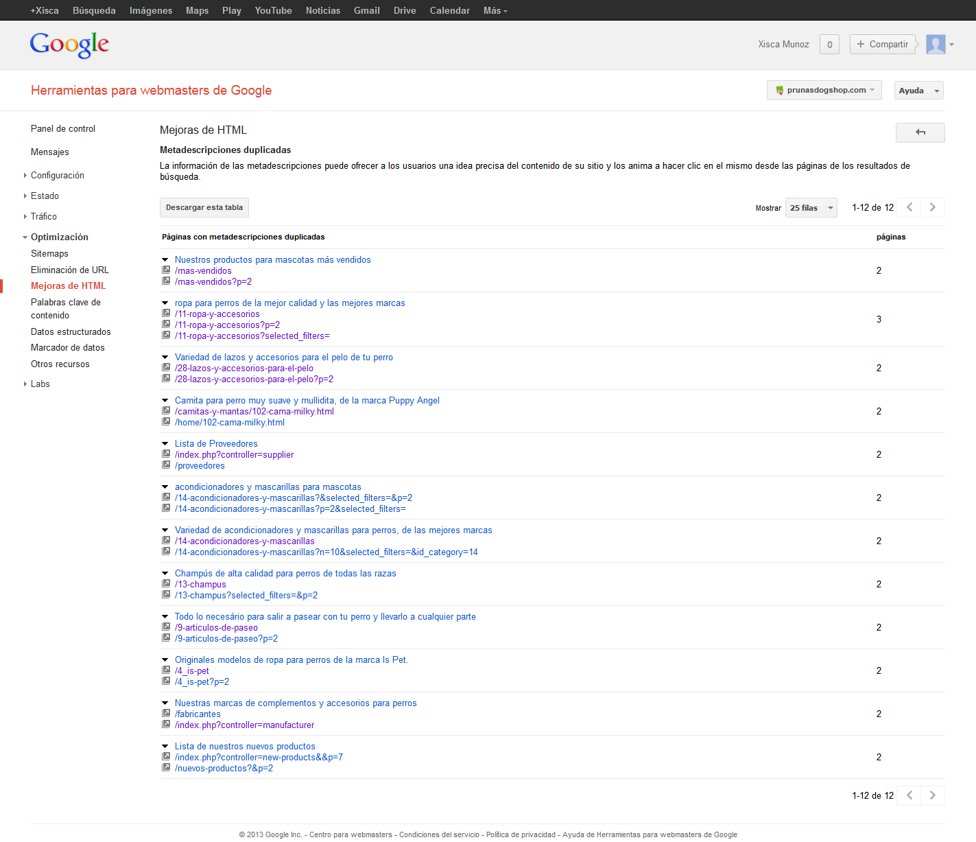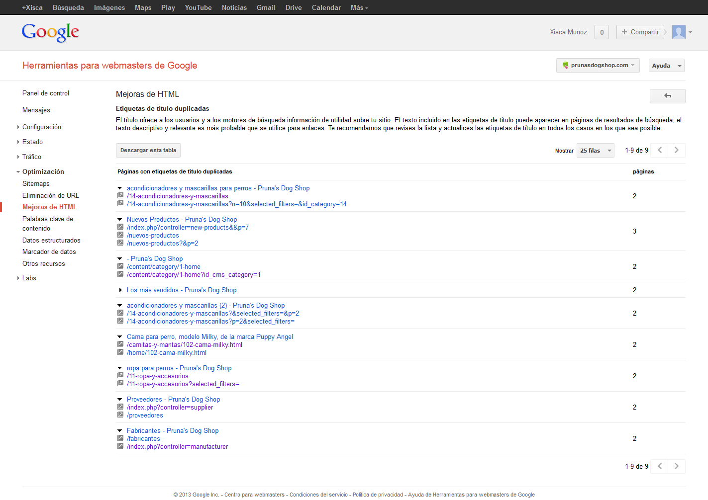 Xiscamc Posted June 6, 2013 Share Posted June 6, 2013 Buenas!! Ws mi primer post en el foro y necesito algo de ayuda. El caso esque he estado buscando info por el foro y no he conseguido aclararme, también os diré que mis conocimientos web son escasitos.... La cosa es que entrando en las tools para webmasters de Google me encuentro con que tengo metadescripciones y etiquetas de título duplicadas y no sé como solucionar el problema. Creo que e sproblema de paginación. Si pudiérais decirme como debo proceder os lo agradecería. hace un mes que hemso empezado con la web y necesitamos que esté todo correcto, claro. Os adjunto unas imágenes de lo que ocurre: Os dejo la web por si os puede servir cotillearla: http://prunasdogshop.com/ Link to comment Share on other sites More sharing options...