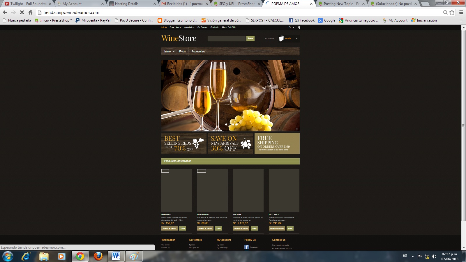 Luz Belle Posted June 7, 2013 Share Posted June 7, 2013 Hola a todos, ¿cómo están? El inconveniente que me impide seguir adelante es que después de instalar el tema "winestore" en mi back office, se me ha desconfigurado el https (ya lo había solucionado, pero nuevamente me aparece el triángulo amarillo); las imágenes de los productos no se ven, y al momento de hacer pruebas con el carrito de compras, no me da la opción de crear cuenta como lo he configurado en mi back office. He buscado en los foros, pero no hallo una solución. Agradezco enormemente cualquier respuesta. P.D. Adjunto capturas de pantalla. tienda.unpoemadeamor.com Link to comment Share on other sites More sharing options...