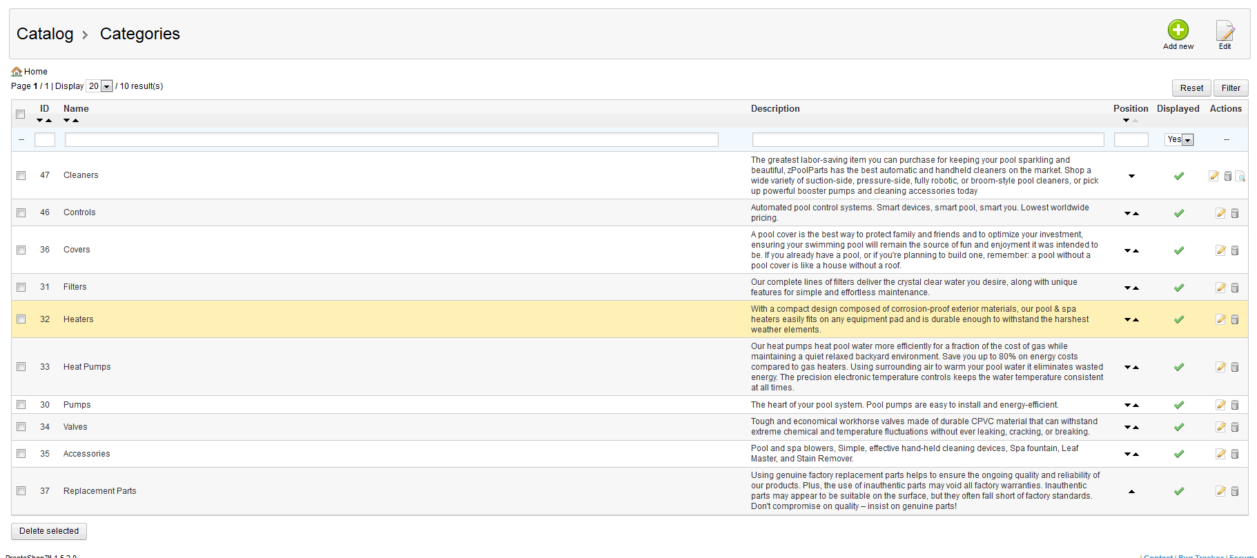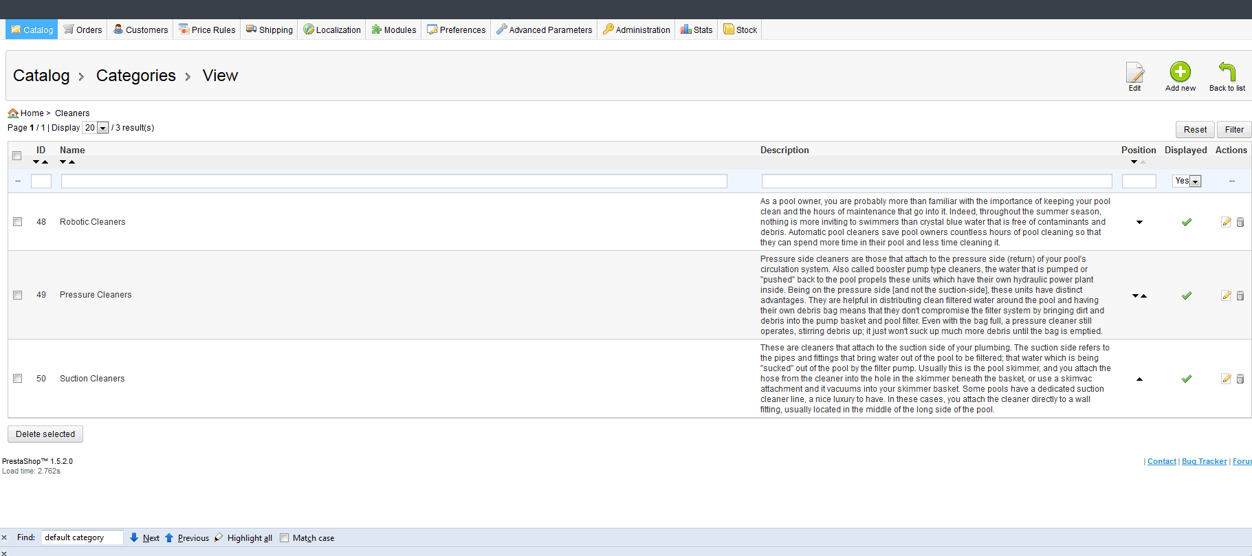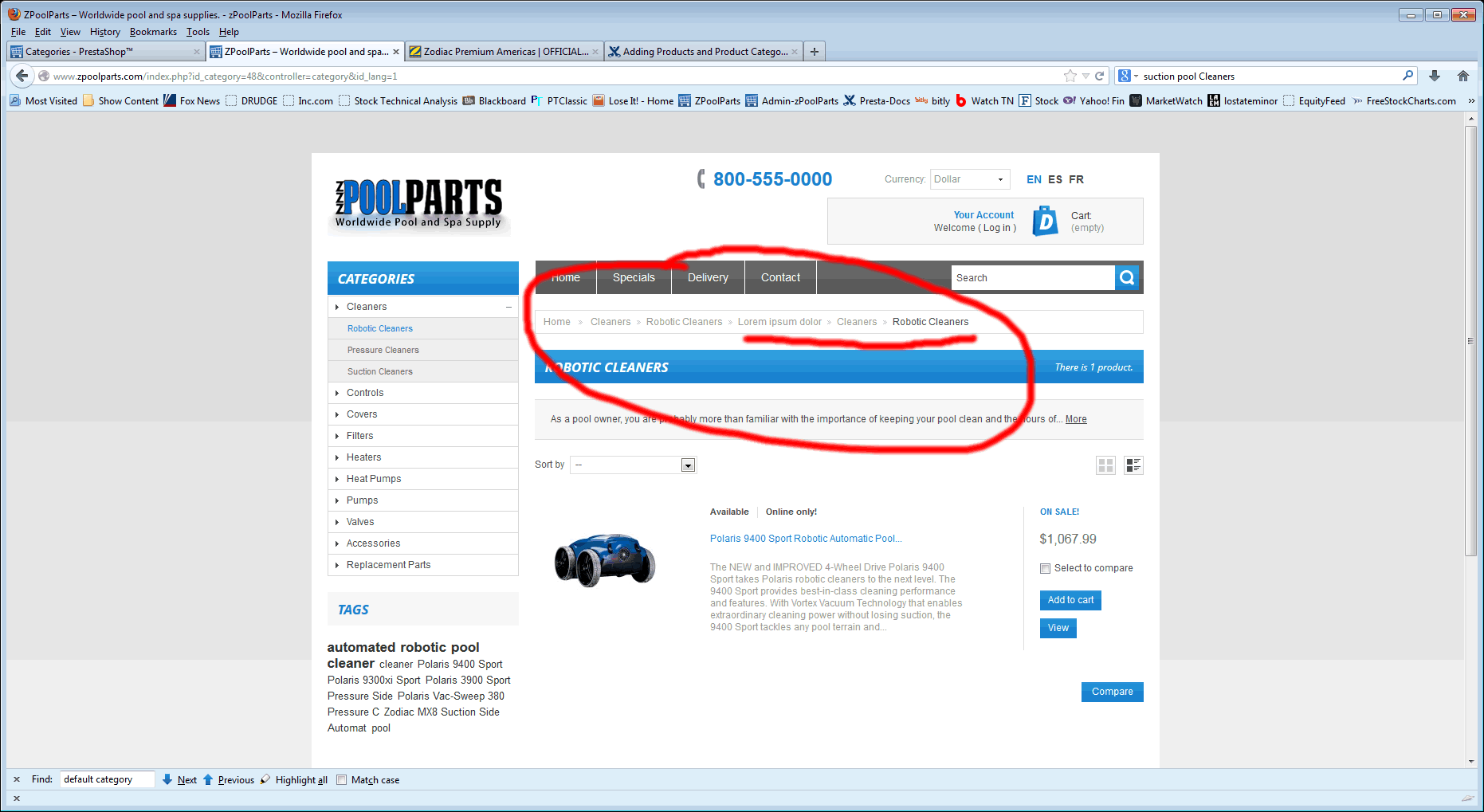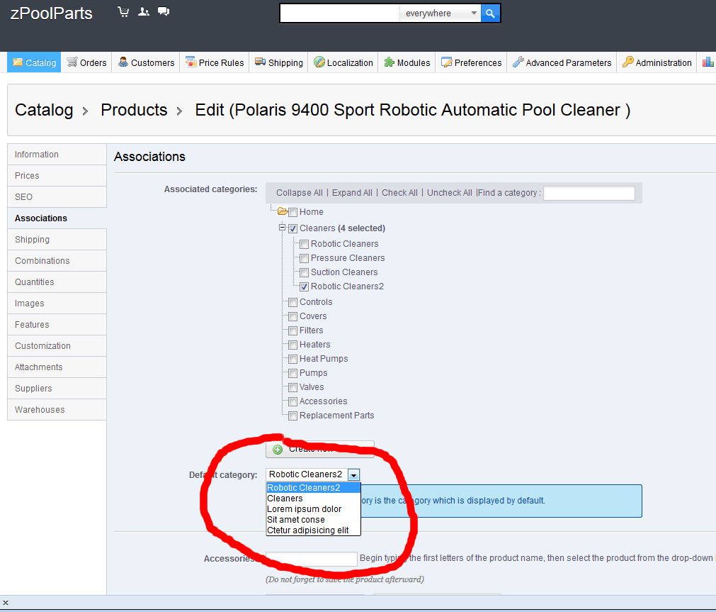 dsprinting Posted June 8, 2013 Share Posted June 8, 2013 I'm having a problem finding where to remove "default categories" - "Lorem ipsum dolor" and the redundant category desciption afterwards: Lorem ipsum dolor>Cleaners>Robotic Cleaners They're showing up on my site in the category paths, but can not be found / seen in the admin catagory section to edit / remove. I was able to locate them in the pull down menu in admin under catalog>products>associations. See the attached screen shots. Any information would be greatly appreciated. Thank you! Kurt Link to comment Share on other sites More sharing options...