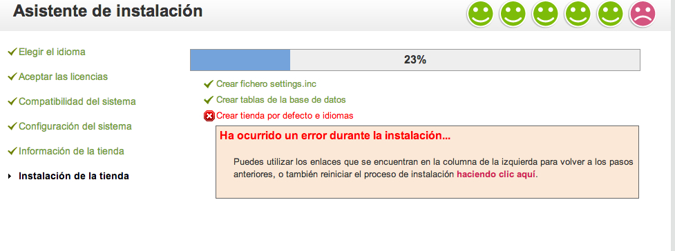Snapy Posted June 8, 2013 Share Posted June 8, 2013 (edited) Hola atod@s, Tengo que reinstalar prestashop de nuevo en mi host, por problemas, he tenido que reinstalarlo creando otra base de datos en el host. el problema es que casi al final de la instalación típica de PS, me sale lo que podéis ver en la imagen que adjunto. Mi dominio es: ESPIACENTER.COM y la dirección es espiacenter.com/prestashop NOTA: me obliga a cambiar el prefijo de la base de datos muchas gracias. Edited June 9, 2013 by Snapy (see edit history) Link to comment Share on other sites More sharing options...
