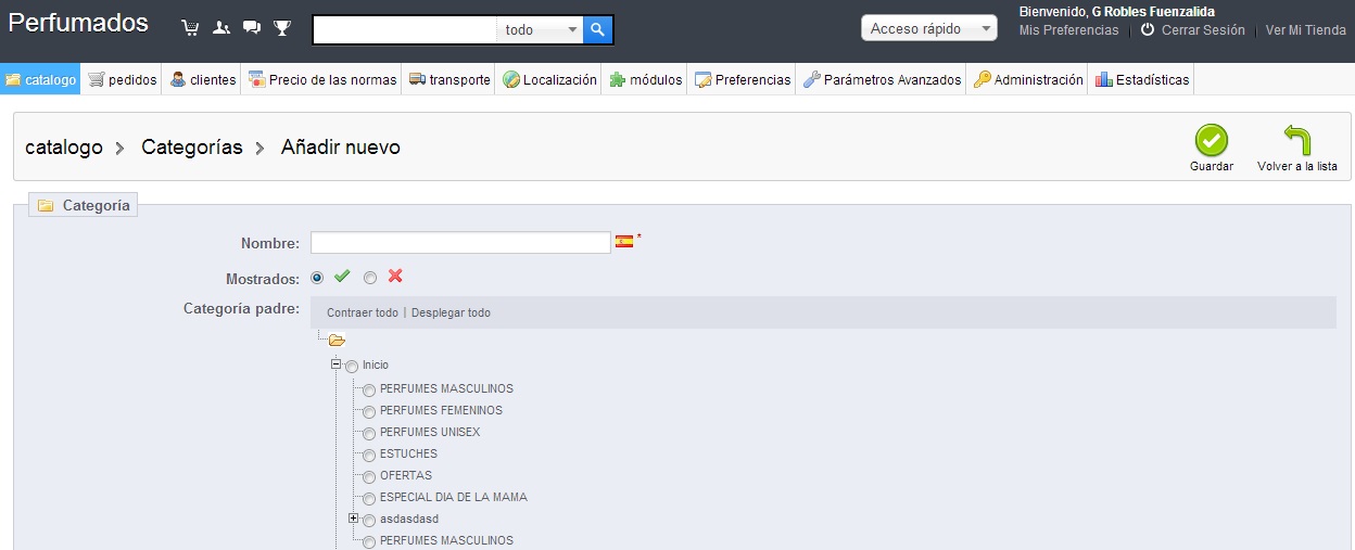 Como pueden ver en las screenshots las categorias aparecen al crear una nueva dentro de la raiz "inicio"
