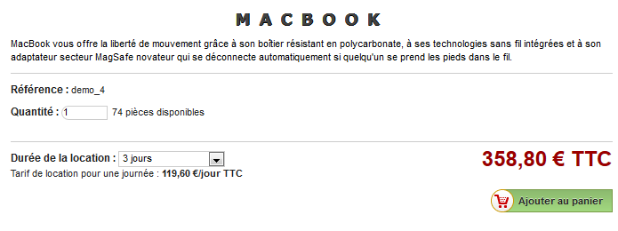 Je poursuis la réalisation de mon module de location d'article. Mais évidemment j'ai codé comme un porc, et je suis donc perdu. L'utilisateur choisi la durée de location (en jours, et le prix varie en fonction de cette durée).