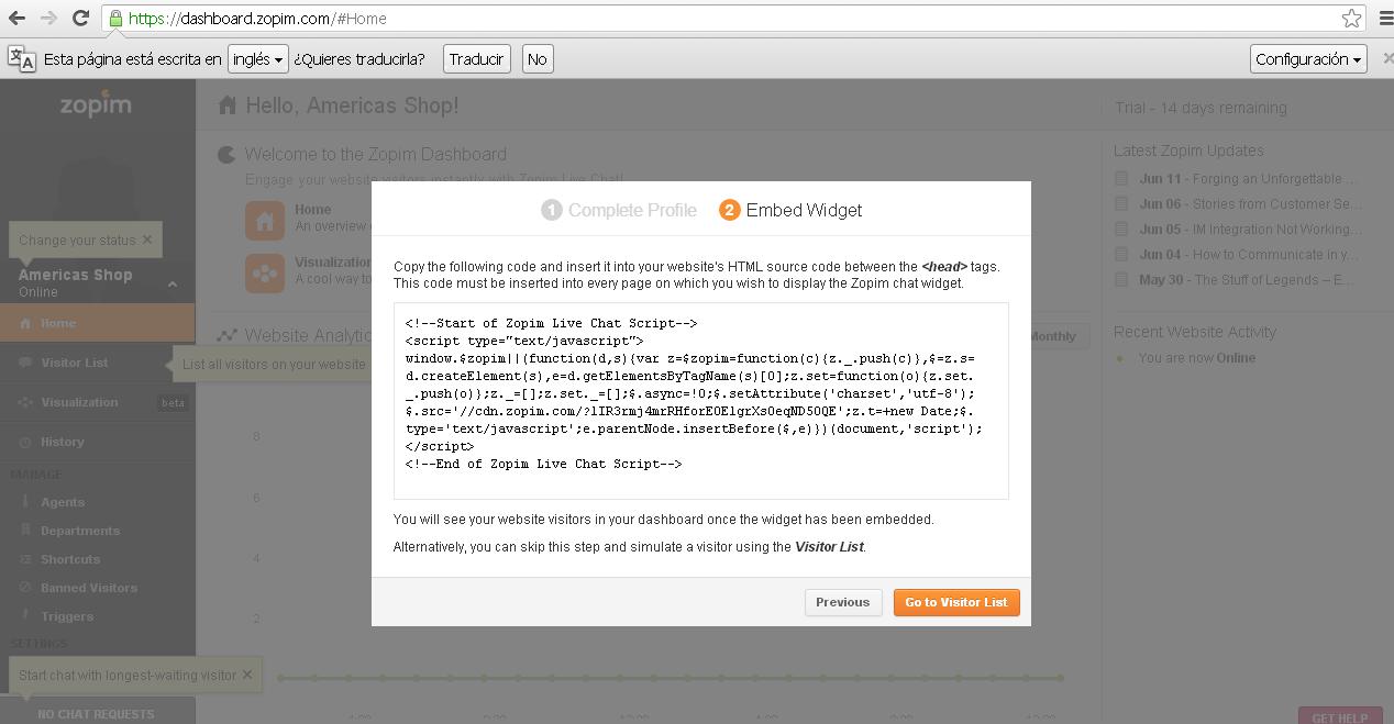 Bueno entonces me acabo de registrar en Zopim y me a dado el codigo que debo agregar....