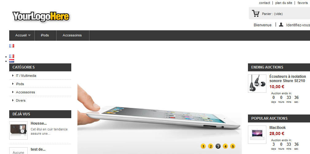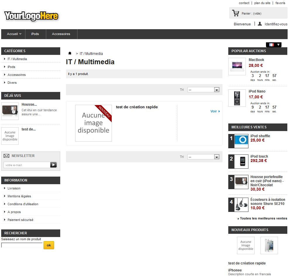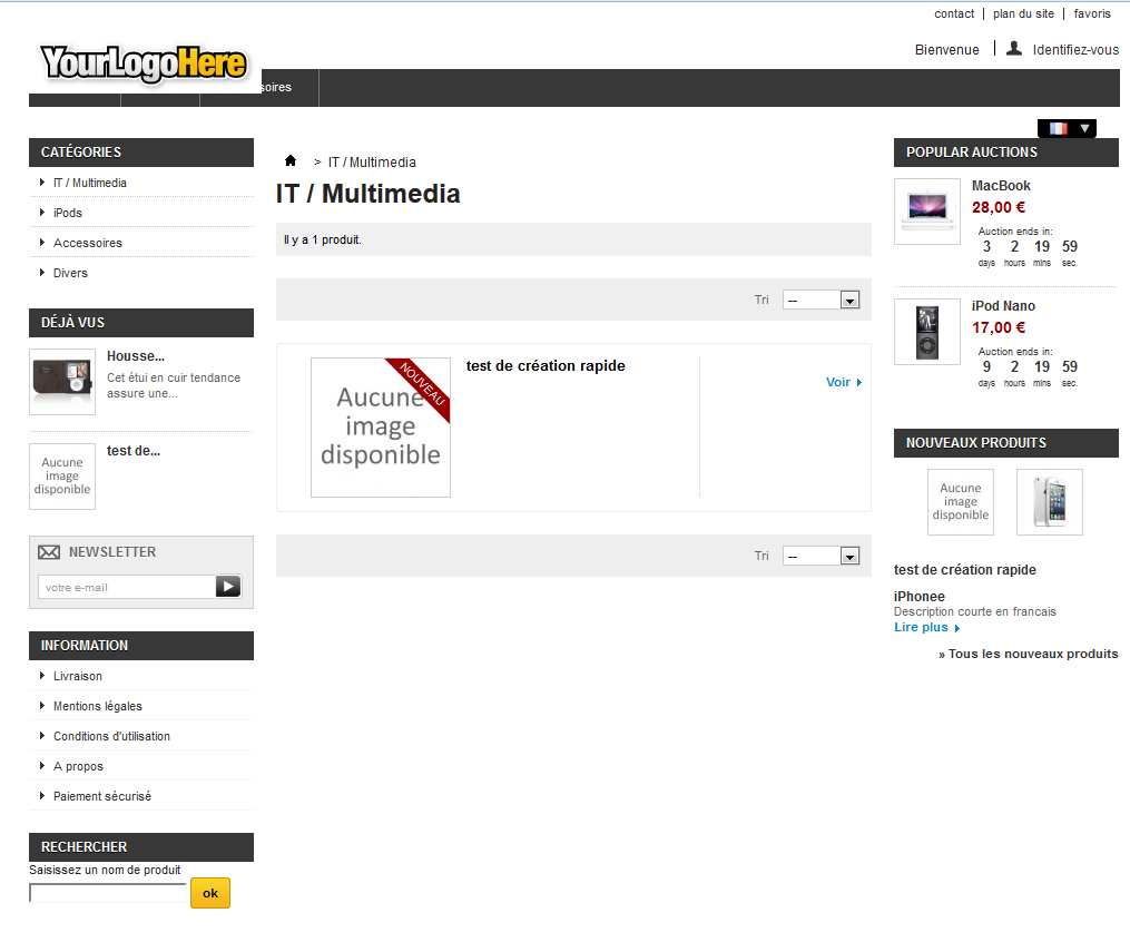 Jo Black Posted June 12, 2013 Share Posted June 12, 2013 Bonjour, Alors j'ai un soucis et je commence à peine à comprendre et bidouller Prestashop et évidament j'ai du foirer un truc. J'ai deux problème d'affichage, le premier est que le logo du site est bien positionné en mode normal mais quand je passe en mode catalogue il descend et s'incruste dans la barre de menu ( voir photo ) Et mon autre problème est que le bloc de selection des langues ne veut plus se mettre comme à l'origine. Si quelqu'un pourrait m'éclairer sur ces deux problèmes je l'en remercie d'avance. Link to comment Share on other sites More sharing options...
