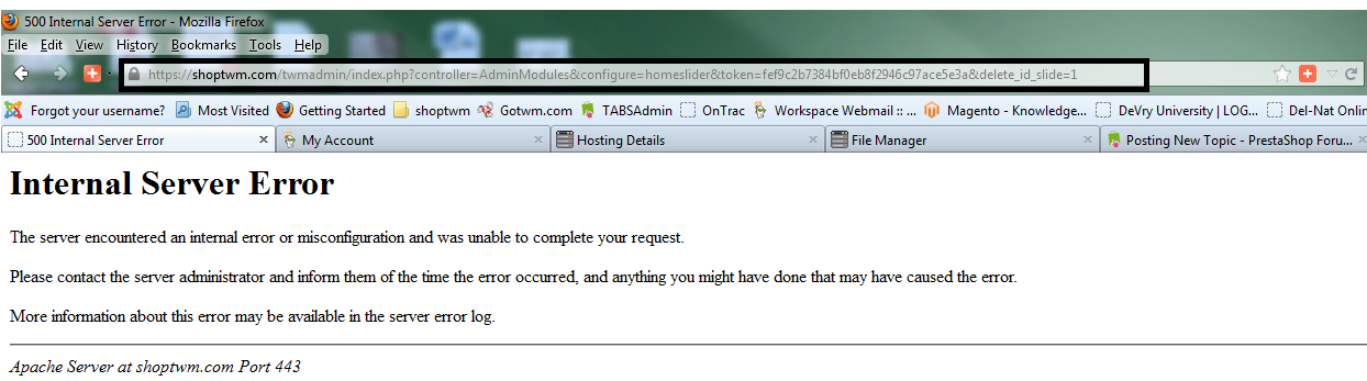 bilalhussain Posted June 12, 2013 Share Posted June 12, 2013 Hello, 1. please see the attached picture. Homeslide module isnt working as it supposed to be.. 2. also when I try to delete the slide it end up with Internal Server Error 500. When I go back to the page it shows the slide IS DELETED. {I have been talking to godady support and I can't get the Apache error / PHP error logs. So please help me out here...} 3. and when I try to refresh the page after the above step I end up with [PrestaShopDatabaseException] MySQL server has gone away. Please help me out here. I worked very hard to setup prestashop website and I am almost at the point to move over to any other shopping-cart system. But I also don't want to leave prestashop. Regards, Bilal Link to comment Share on other sites More sharing options...