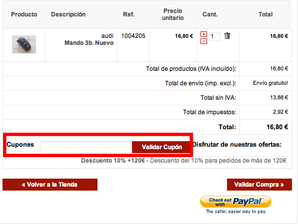 Me estoy encontrando con el problema de que mucha gente se atasca a la hora de hacer compras en mi web en el paso de los cupones, ya que se piensan que para continuar la compra hay que meter algún cupón.