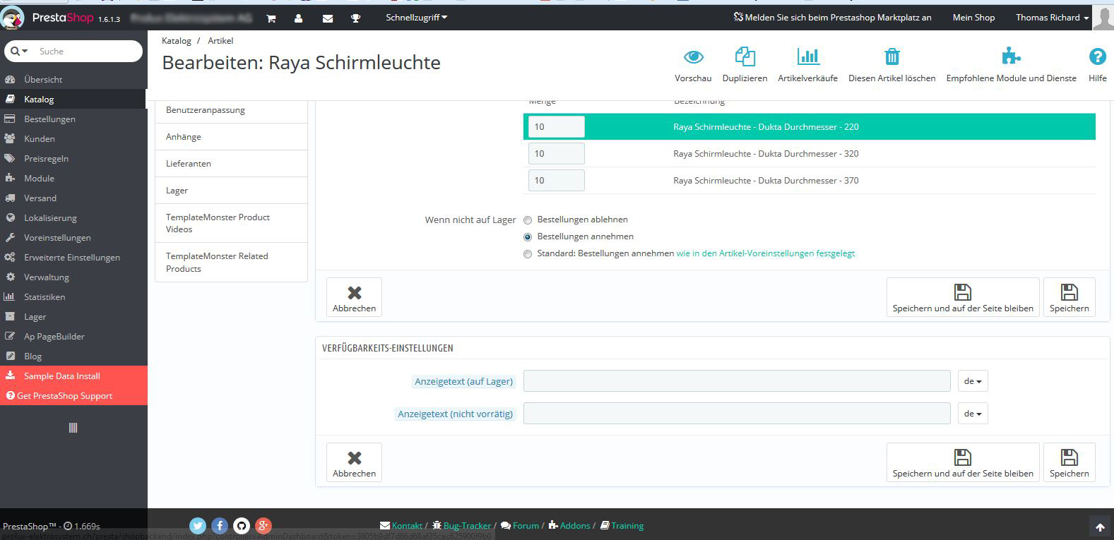 Wo kann ich in Prestashop 1.6 das Verfügbarkeitsdatum  im Backend festlegen?
