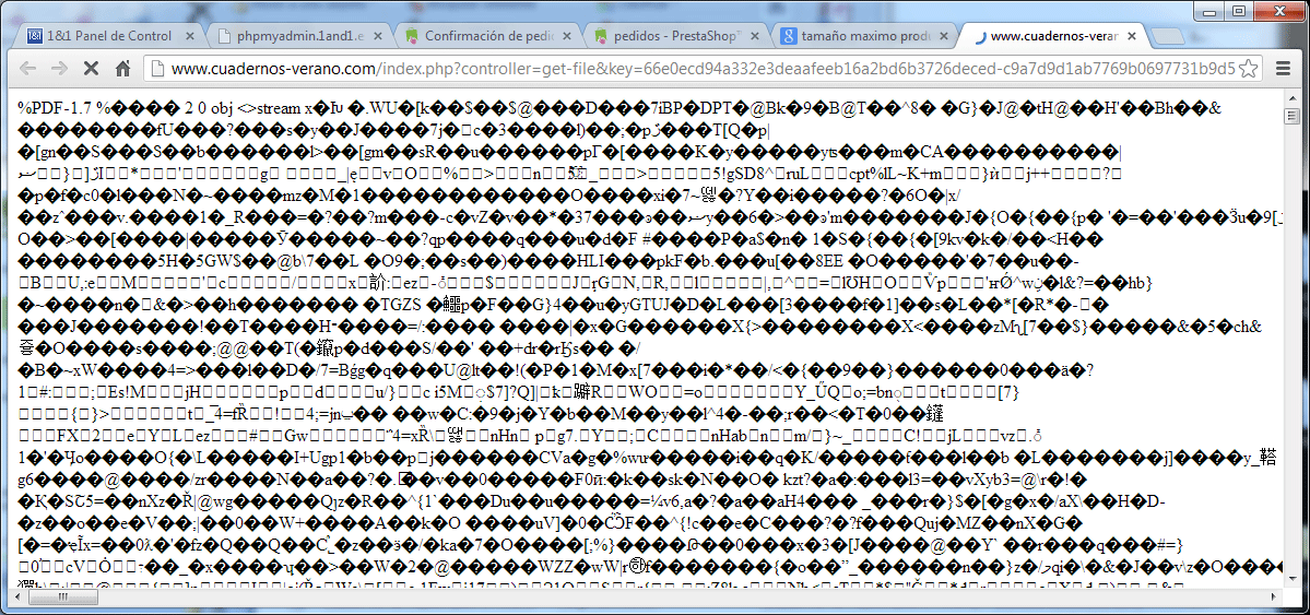 Adjunto una imagen de lo que aparece cuando el cliente intenta descargarse el fichero PDF.