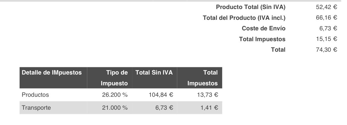 ujin81 Posted June 17, 2013 Share Posted June 17, 2013 (edited) Buenas noches. Vuelvo con otro problema. En las facturas estoy detallando los impuestos por separado. El caso es que el apartado de total de productos sin IVA, no coincide con el desglose de la factura. Esta incrementado bastante. Adjunto captura. Utilizo ps. 1.5.4.1 ¿Alguien me puede ayudar? Saludos Edited July 8, 2013 by ujin81 (see edit history) Link to comment Share on other sites More sharing options...