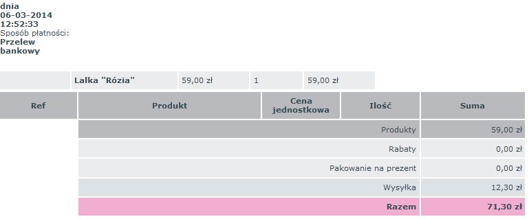 MSLED Posted March 24, 2014 Share Posted March 24, 2014 WItam, mam taki problem z powiadomieniami. Kiedy klient wybierzez metode płatności "przelewy24.pl" i potwierdzi zamówienie dostaje dwie wiadomości. jedną z podsumowaniem zamówienia oraz drugą o oczekiwaniu na płatność. Ta druga jest chyba skopana bo przedstawia się tak: Twoje zamówienie zostało złożone i zrealizujemy je gdy tylko otrzymamy od Ciebie zapłatę.Wybrano czek jako metodę płatności. Wyślij go na poniższy adres:Z tytułu:Zamówienie NDICLMAJE kleint nie wybrał opcji czek tylko przelewy... wiecie może gdzie to poprawić, bo przejrzałem wszystkie pliki z tresciami maili i nie znalazłem żadnego który pasuje do tego opisu Link to comment Share on other sites More sharing options...
