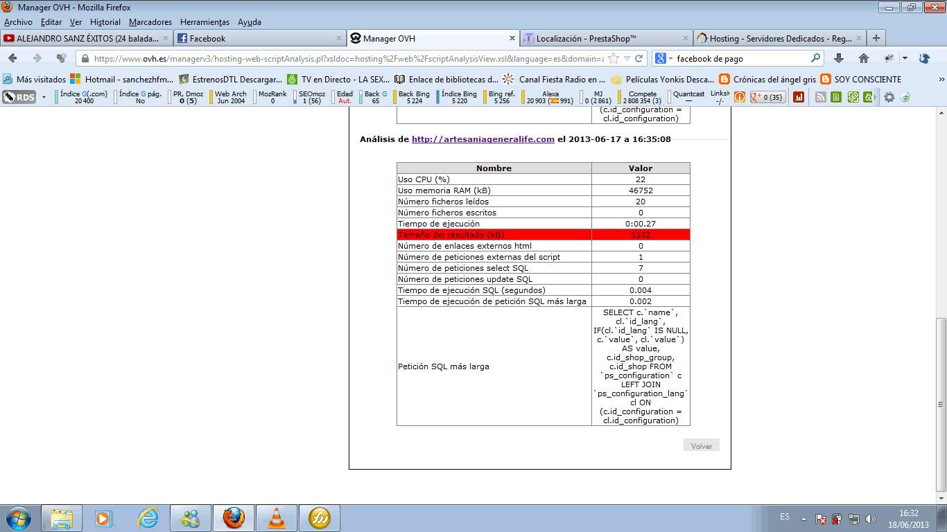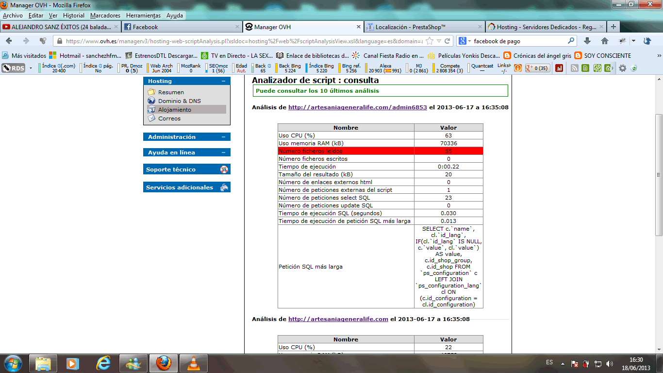 Paco_gr Posted June 18, 2013 Share Posted June 18, 2013 Buenas, me presento, soy Paco y nuevo en este foro aunque llevo tiempo siguiendo vuestros consejos, que son de gran utilidad. Mi web mas en concreto el panel de administrador se queda pillado o no terminar de cargar cuando navego mucho por el o introduzco varios productos y al salvar el ultimo ahi es cuando se queda pillado. Tambien comentaros que suele pasar tambien cuando tengo la web abierta en otra pestaña. Antes no es que fuese muy fina pero podia trabajar con cierta normalidad aunque algo lento para mi gusto. esto se ha agravado, no se si tiene algo que ver, pero se agravo al punto de quedarse pillada cuando elimine tres idiomas, el gallego, el catalan y el portugues. Mi servidor es ohh.es, y pasan de mi como de la... me dijeron que hiciera un analisis del script, o sea el prestashop, y aqui os traigo la captura para ver si me podeis ayudar o encontrar el problema. por cierto mi presta shop es el 1.5.4 y lo tengo totalmente optimizado tal y como nos indica "Nadie" con sus sabios consejos y el panel de administracion no muestra ninguna alarma. Gracias por vuestra ayuda Link to comment Share on other sites More sharing options...