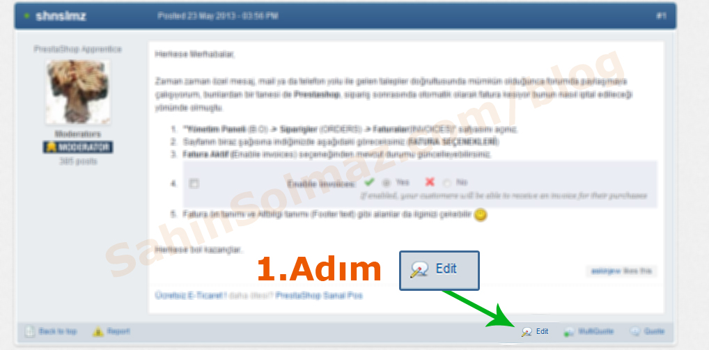 askinjew Posted June 9, 2016 Share Posted June 9, 2016 Merhabalar, Bazı konu başlıkları altında ve bana gönderilen bir çok özel mesajda, konu başlığının nasıl düzeltilebileceği sorulduğu için, aşağıda resimlerle bunu anlattım, umarım faydalı olur Sizlerden ricam, açtığınız konudaki sorun çözüldüğünde konu başlığını, [ÇÖZÜLDÜ] Konu başlığı.. olarak lütfen düzenleyiniz. Şahin bey bu önemli hatırlatmanızı foruma üye olan arkadaşlara kısa mesaj olarak göndermeniz mümkün mü ? Zira sorunları için konu açıp çözümleyen arkadaşlar konuyu [Çözüldü] olarak işaretlemedikleri için konular açık ve ilgilenilmemiş olarak görülüyor. Bu nedenle aynı konudan yenisi açılıp soruna cevap aranıyor. Bu da siz değerli üstadlarımızın defalarca aynı konuya cevap yazmanıza ve doğal olarak yorulmanıza sebep oluyor. Hem sizin açınızdan hemde forumdaki bizler açısından gereksiz soru kirliliğini önlemek için buna bir çözüm olarak pm den yeni üye olan ve tüm üye arkadaşlara otomatik olarak gönderebileceğiniz bir hoşgeldin ve forum hatırlatması mesajı olursa süper olur. Tekrar değerli bilgilerinizi bizimle paylaştığınız için teşekkür ederiz. İyi çalışmalar bol kazançlar dilerim. Link to comment Share on other sites More sharing options...
