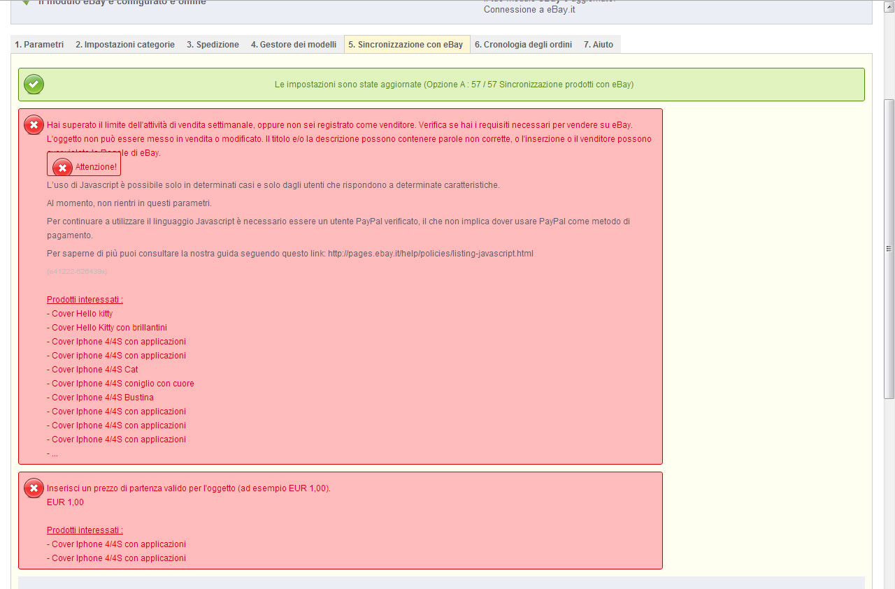 Fabrihno Posted June 20, 2013 Share Posted June 20, 2013 (edited) Buongiorno a tutti, il mio problema oggi è il modulo ebay e vedendo in giro ci sono diversi bug. Ho la versione di PS 1.5.4.1 e 1.4.1 di ebay : la registrazione va a buon fine ma quando cerco di importare i prodotti mi da sempre errore. Qualcuno ha qualche soluzione ma soprattutto a qualcuno funziona correttamente il modulo? Edited June 20, 2013 by Fabrihno (see edit history) Link to comment Share on other sites More sharing options...
