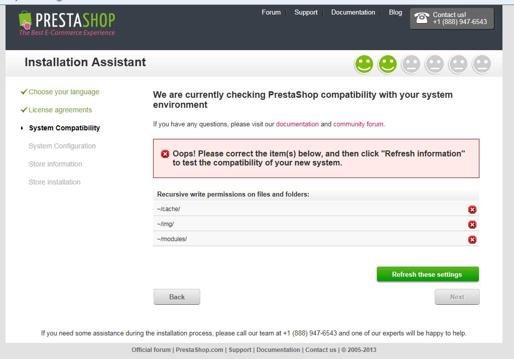 CPace Posted June 21, 2013 Share Posted June 21, 2013 I have started the installation process. I've gotten to step 3 System Compatability. I've had to change permissions to quite a few directories to 777. I now have 3 directories left that I can't get passed. cache img modules All 3 of these directories have permissions set to 777 but I still am getting errors. I've attached a copy. Any help would be appreciated. Link to comment Share on other sites More sharing options...