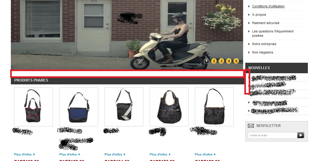 FifiLaFife Posted June 25, 2013 Author Share Posted June 25, 2013 (edited) Ahh avant, j'aurais une dernière question concernant ce sujet. Je n'arrive pas à modifier la taille de mon module homefeatured. Quand je touche au code, cela ne modifie pas le bloc entier, juste de petits éléments ou au contraire, cela modifie tout les blocs. J'ajoute ci-joint une copie d'écran montrant ce que je souhaiterais enlever. Edited June 25, 2013 by FifiLaFife (see edit history) Link to comment Share on other sites More sharing options...