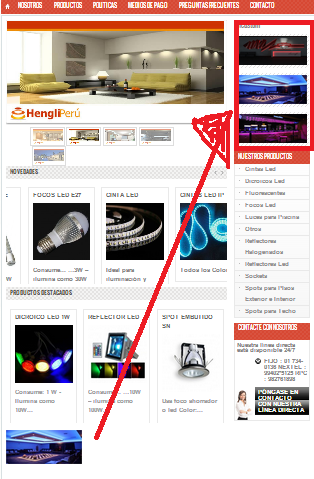 nadie Posted June 23, 2013 Share Posted June 23, 2013 El URL: tvdelperu.com/leo_electronics El homeslider, no lo vas a poder mover a la derecha, si en el fichero: /modules/homeslider/homeslider.php no has añadido esto: public function hookDisplayRightColumn($params) { return $this->hookDisplayHome(); } Una vez añadido, debes ir a la pestaña Módulos -> Posiciones -> Boton verde llamado "Trasladar Módulo" (Botón verde) Señalar: Modulo Imagen de control deslizante para su pagina web hook DisplayRightColumn y guardar. 1 Link to comment Share on other sites More sharing options...