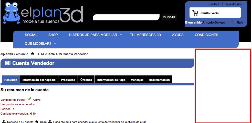 sors11 Posted June 24, 2013 Share Posted June 24, 2013 Buenas, este es un caso que no se si es especial pero vamos, que no lo consigo y pregunto. Compré el modulo Agile MultiSeller no? (que está genial para ahcer multishops en mi shop) Total...que en "Mi cuenta" aparece el link "Mi cuenta Vendedor" y al entrar solo me sale la columna central y quiero que admás salga la derecha...quiero mostrarla para poner links ahi. He hecho esto en otros casos, en autentication, en cms ...etc...en varios sitios he quitado y puesto hooks laterales a mi antojo, pero en este caso donde edito? en global.css? ....o en el ps/modules/agilemultipleseller/myselleraccount.tpl se trata de un cms esta pagina? en caso de localizar el archivo...cual era el código para mostrarlo? no se..me rallo...a ver si s os ocurre...os dejo una captura Link to comment Share on other sites More sharing options...