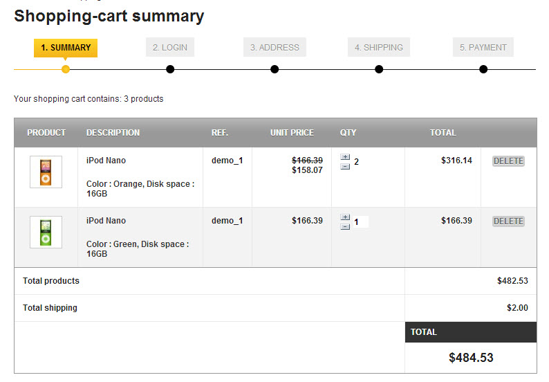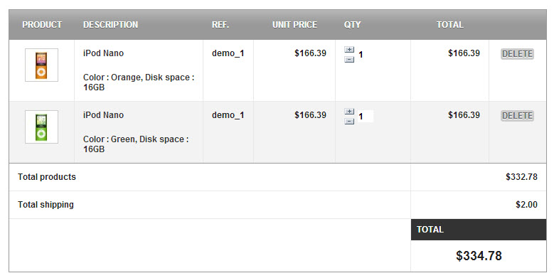 (iPod Nano) from quantity of 1 to quantity 2 (deleted qty 1 and created qty 2)