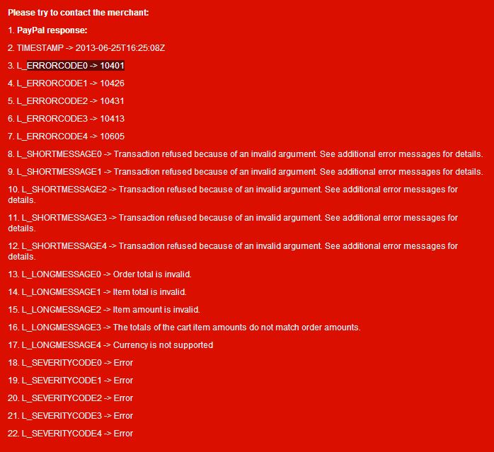 Felipao Posted June 26, 2013 Share Posted June 26, 2013 Estimados, Tengo múltiples errores en el pago de paypal... ni siquiera se por cual partir :/ Alguien con experiencia podría ayudarme... estuve leyendo por ahí y al parecer es problema con el host? pero me imagino que no es sólo eso ya que reporta todos estos códigos de error 10401,10426, 10431, 10413, 10605. Agradecería mucho la ayuda. Saludos!! Link to comment Share on other sites More sharing options...