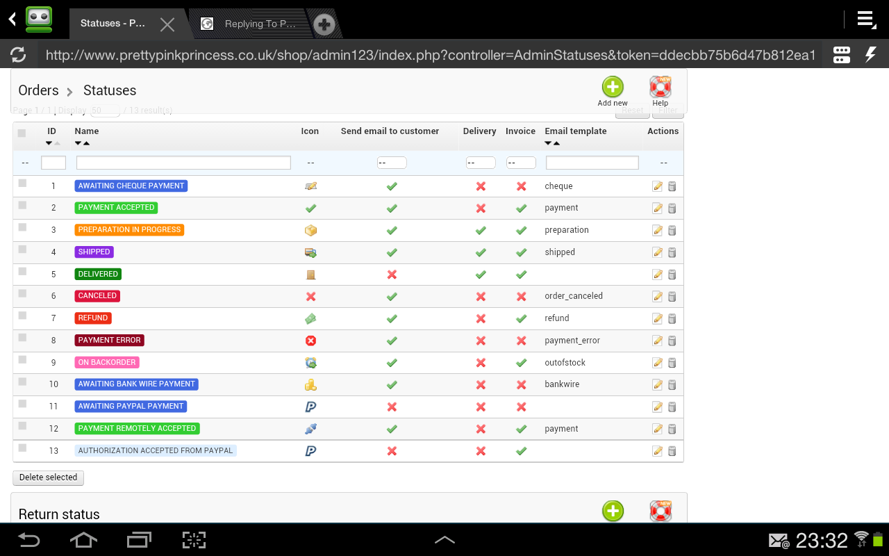 djmarkm Posted June 27, 2013 Author Share Posted June 27, 2013 Hi Thanks for the screenshot. My order statuses exactly matches yours except I have an additional item at the bottom Id : 13 Authorization accepted from Paypal Order status table would seem to be ok Link to comment Share on other sites More sharing options...