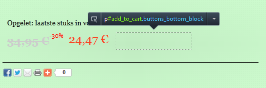 JornBart Posted June 29, 2013 Share Posted June 29, 2013 (edited) Hi, I'm having a big problem: the button to add something to a cart has suddenly disappeared. Untill recently everything worked fine. I added a number of products in sale in now the button is missing. When I inspect the element I can see that the button is still there, but for some reason it is hidden (see attached image). Can somebody please help me out?!? I'm having already having customers complaining that they can't order anything. Bart Problem solved: was caused by mistyping in css-file Edited June 29, 2013 by El Patron (see edit history) Link to comment Share on other sites More sharing options...