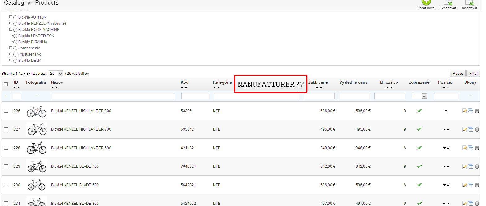 aktivsport Posted June 30, 2013 Share Posted June 30, 2013 (edited) Hello, please, it is possible to add new column MANUFACTURER in admin page where is listed products in e-shop? Sometimes i forgot to add manufacturer to product and it ruins my precise selection of products, so with this column i can easily check if product has added to manufacturer (btw. sorry for my english) Thanks Edited June 30, 2013 by aktivsport (see edit history) Link to comment Share on other sites More sharing options...