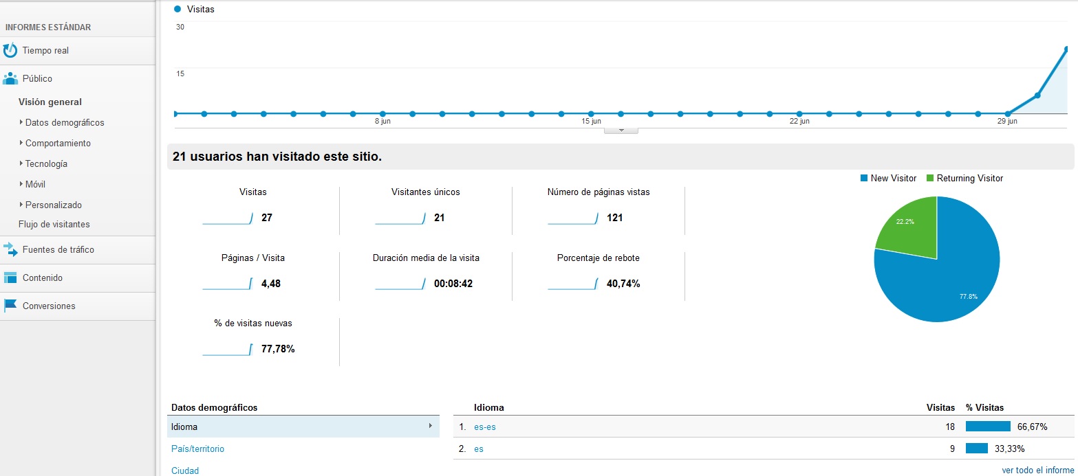 azahara Posted July 2, 2013 Author Share Posted July 2, 2013 (edited) Adiosss, otra vez se ha disparado en las estadisticas del hosting, han pasado dos dias de este mes de Julio y ya aparece visitas diaria 145 que luego a lo largo del mes ira bajando....y al mes que son estos dos dias actualmente 290 visitas. El google analitis sigue igual que anoche no se ha actualizado siguen los mismos datos que adjunte ayer. Podeis sacar algo en clave al respecto con los datos estos? Edited July 2, 2013 by azahara (see edit history) Link to comment Share on other sites More sharing options...