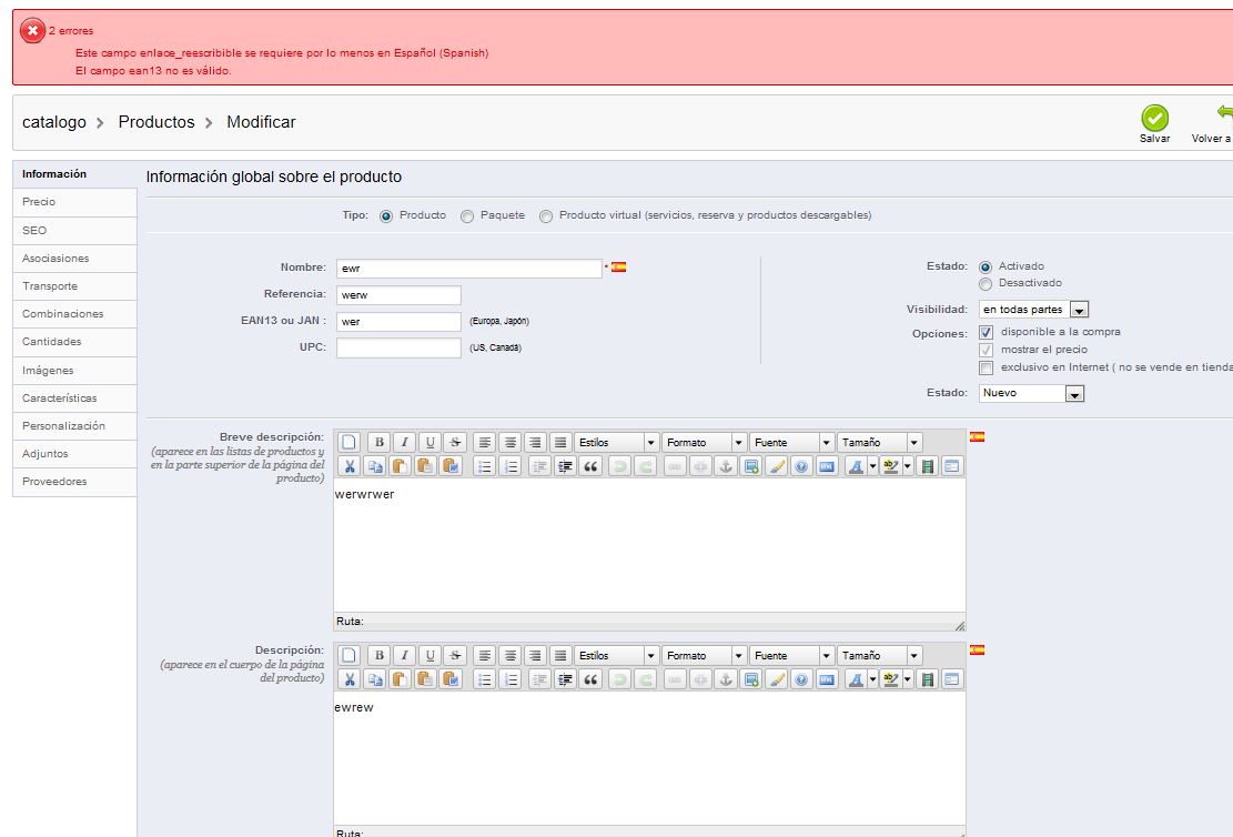 albertovilano Posted June 30, 2013 Share Posted June 30, 2013 Hola, tengo el prestashop 1.5.4. Me cambie de servidor , y resubí en dicho servidor toda la carpeta de mi tienda (carpeta prestashop), y resulta que no puedo añadir productos, me sale le siguiente error: "Este campo enlace_reescribible se requiere por lo menos en Español (Spanish)" Además, en la pestaña imagenes de preferencias (preferencias->imágenes) no se muestra nada sale too en blanco como si no cargara el contenido... a que se debe.. ?? me da miedo reinstalar el prestashop en el servidor y que todo el tema que me ha costado de configurar se desajuste y cambie y no quede como lo tengo.. algúna idea para poder reparar esto?? Muchas gracias Link to comment Share on other sites More sharing options...