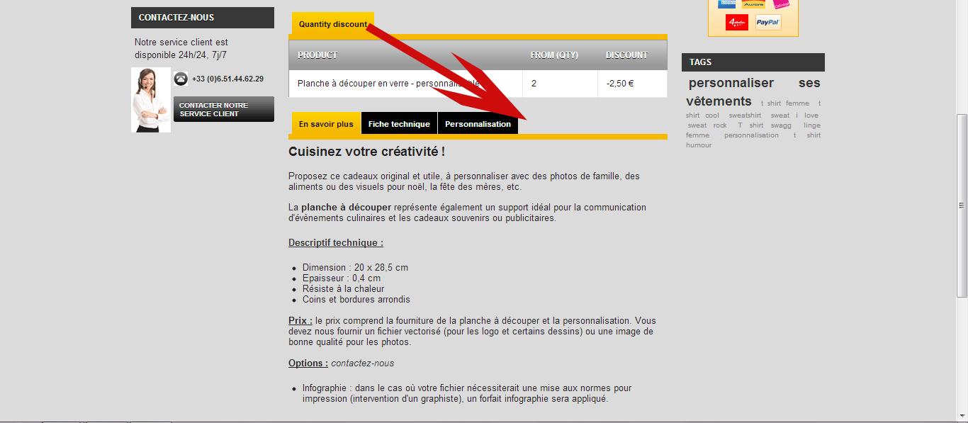 lilynette Posted July 1, 2013 Share Posted July 1, 2013 Bonjour, Comment faire pour que mon onglet "quantity discount" apparaisse à côté des onglets "en savoir plus","fiche technique" et "personnalisation" ? D'autre part, tous les termes de cet onglet ne sont pas traduits de l'anglais vers le français. Comment faire ? Merci beaucoup Link to comment Share on other sites More sharing options...